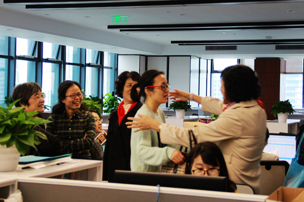 在办公室主任陈瑾等领导的陪同下,老员工们参观了公司六个楼层的办公区域。每到一处、每看到一个老熟人,老同志们都充满欣喜和感动,感慨公司蓬勃发展、日新月异的变化、勾起美好回忆的同时,也对杭州热联时至今日的发展成绩表示由衷的高兴和自豪。