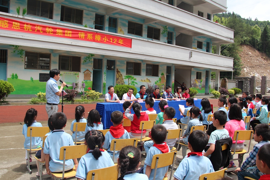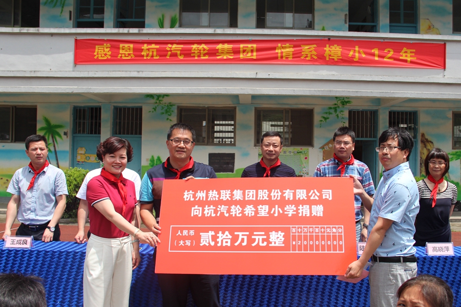 6月7日,对于淳安县中洲镇杭汽轮希望小学的同学们来说,是温暖而又特别的一天,因为热联集团牵手杭汽轮希望小学爱心捐赠仪式在该校操场上举行。杭汽轮集团党委副书记李士杰、党办主任高晓萍,热联集团总经理吕永洪、党总支书记陈瑾等一行走进了杭汽轮希望小学,不仅为全校120余名同学送去了体育用品和书籍,同时我司向杭汽轮希望小学捐赠20万元人民币,助力该校宿舍楼建设。